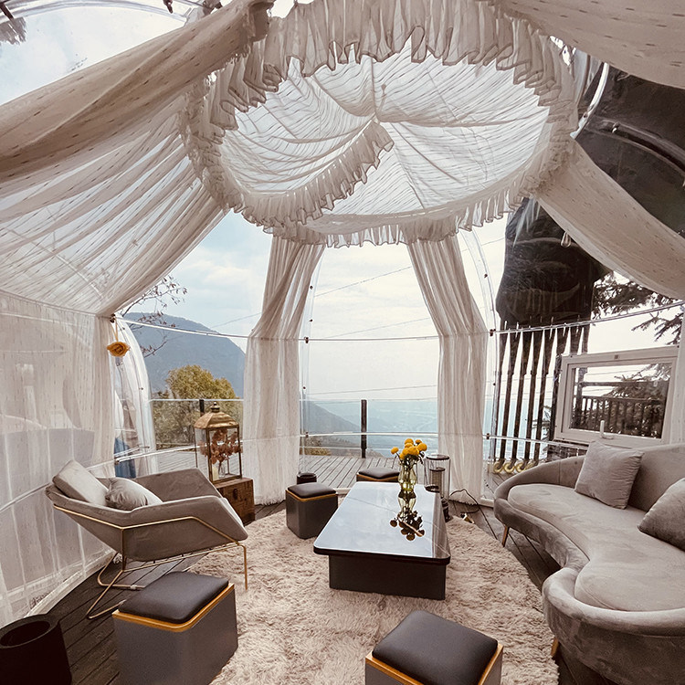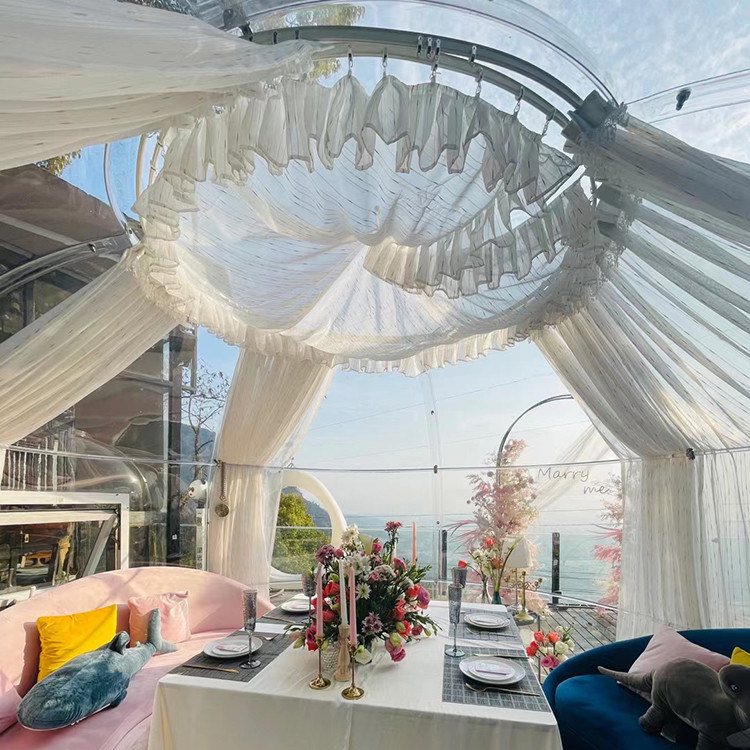 পরিষ্কার বুদ্বুদ তাঁবু বহিরঙ্গন কার্যকলাপের জন্য নিখুঁত, আপনাকে একটি অনন্য এবং অবিস্মরণীয় অভিজ্ঞতা দেয়।তাঁবুটি দৃশ্যমান, উপাদান থেকে সুরক্ষিত থাকার সময় আপনাকে বাইরের একটি শ্বাসরুদ্ধকর দৃশ্য প্রদান করে।প্রতিটি বুদ্বুদ তাঁবু টেকসই PVC উপাদান থেকে তৈরি যা UV সুরক্ষা প্রদান করে এবং 4㎡ থেকে 24㎡ ব্যাস, 2.5m থেকে 6m পর্যন্ত আকারে পাওয়া যায়।এটিতে একটি পর্দাও রয়েছে যা প্রয়োজনের সময় খোলা বা বন্ধ করা যায়।এই পরিষ্কার বুদ্বুদ তাঁবুর সাহায্যে, আপনি নিরাপদ এবং আরামদায়ক অভিজ্ঞতা থাকার সময় বাইরে উপভোগ করতে সক্ষম হবেন।